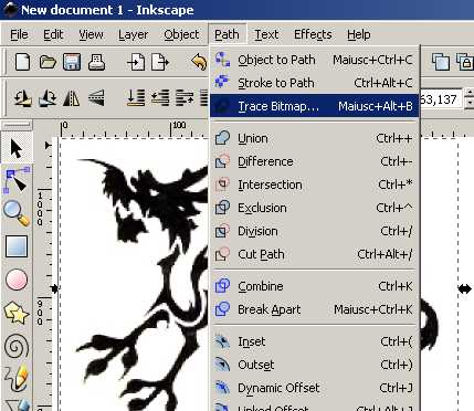 Open Inkscape, choose "new document" from the main menu, and import your image with the "import" command of the "file" menu. Your imagewill appear inside the new document. Select it by mouse clicking on it once.