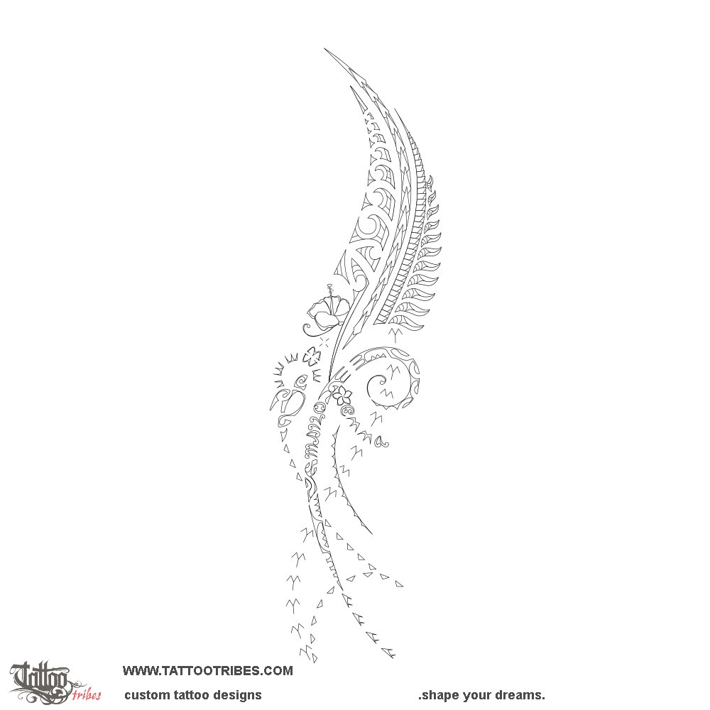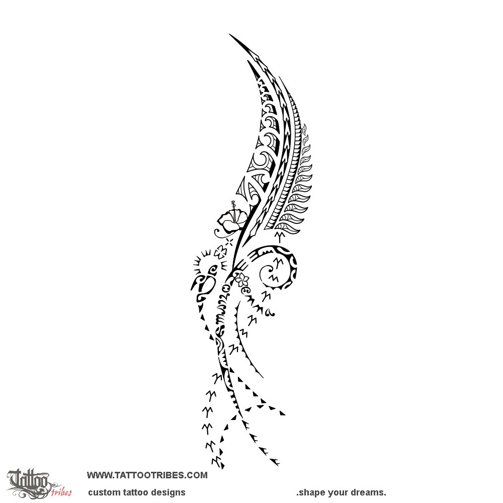 Polynesian tattoos explainedThis fern, a symbol of maturity, includes elements showing strength and tenacity (the hammerhead shark motif and the spearheads), bringing new beginnings (the koru) and a new life (te ha, the breath of life), with flax leaves for family union.