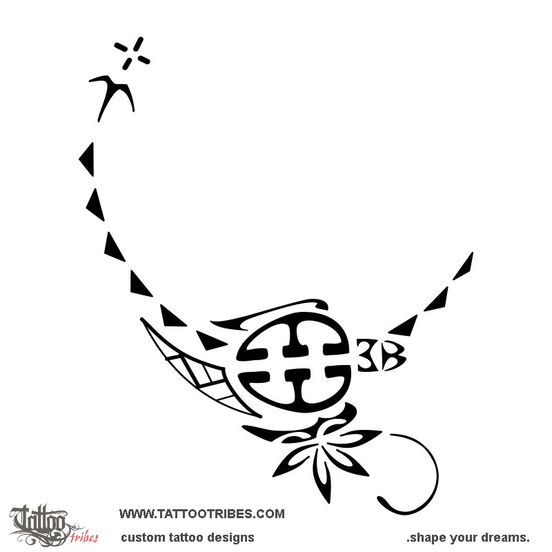 There is a small tiare flower below the turtle to remind of Tahiti.