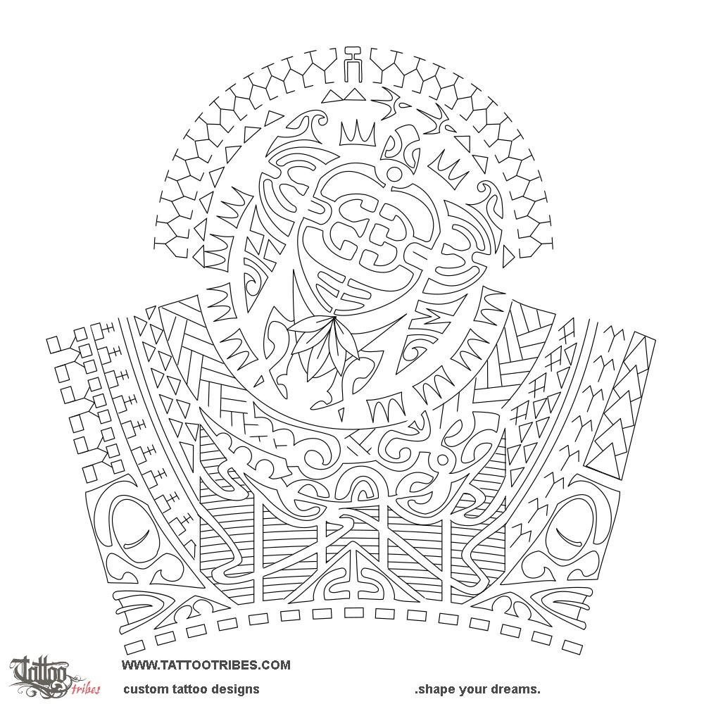 Polynesian turtle half sleeve tattoo