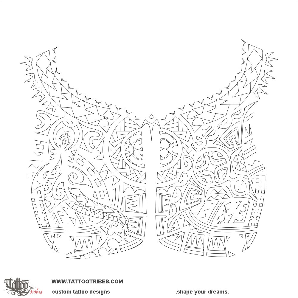 Polynesian tattoo for both pectorals