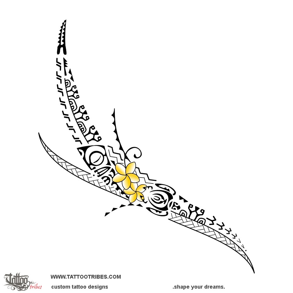 This feminine Polynesian tattoo for the hip is one of two designed to go together telling Tereza's story.