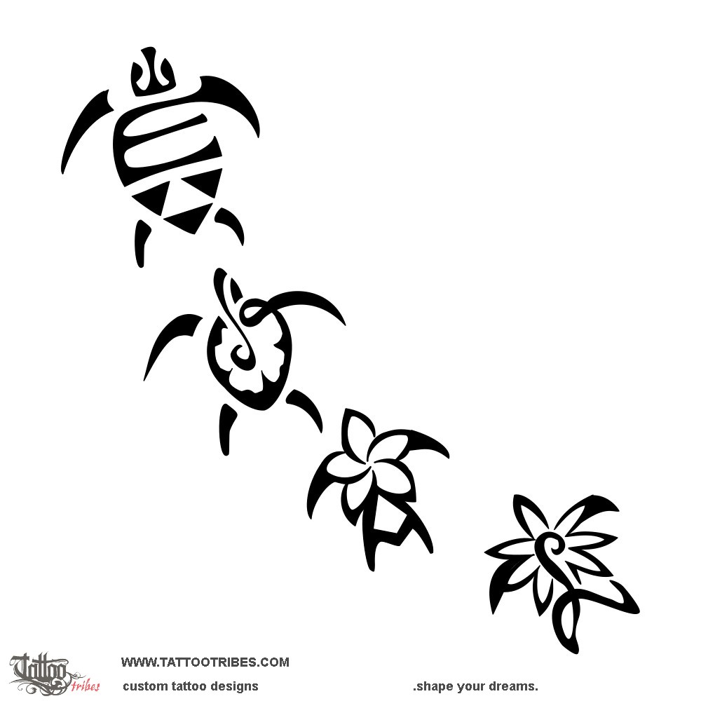 Polynesian tattoos explainedAndreane asked us to prepare 4 minimalist turtles to represent the members of her family, with each turtle possibly remaining within a quarter size.