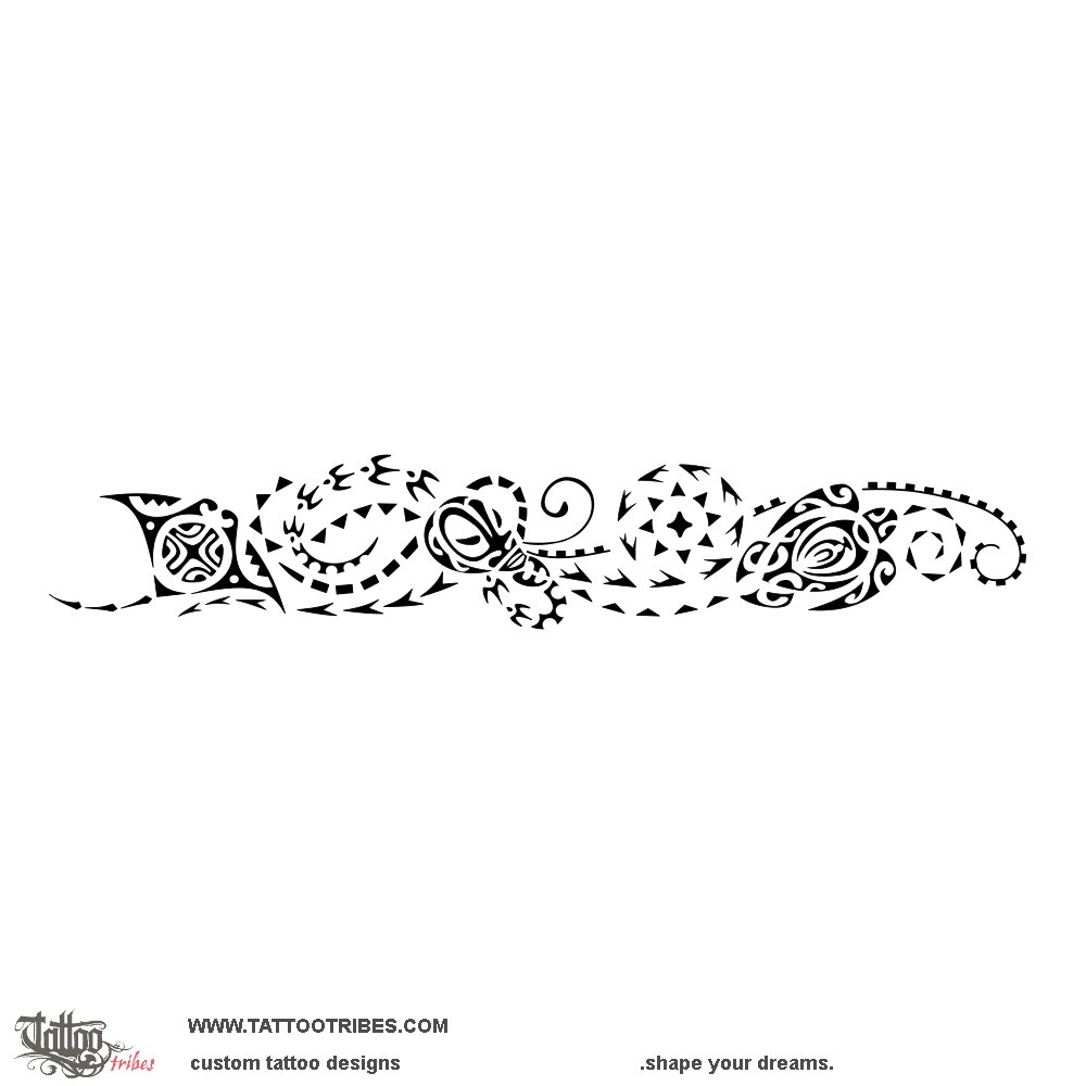 This Tahitian style Polynesian armband tattoo was prepared for Tito and it has three main elements intertwined by waves-like patterns: an octopus, a turtle, and a manta.