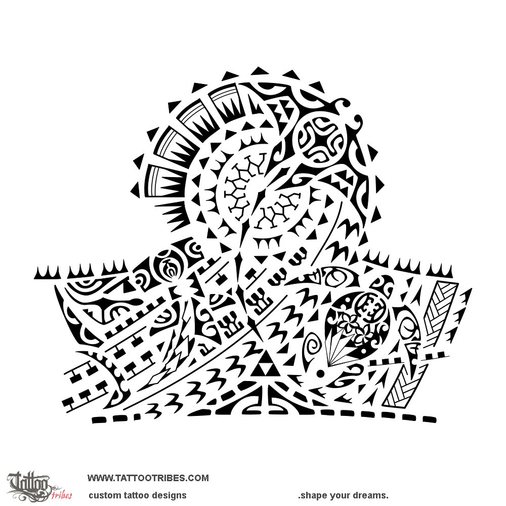 The manta symbolizes freedom (placed central and big), with a Marquesan cross inside for harmony and balance.