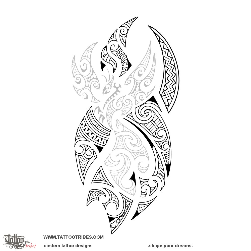 Clasina has our Maori style phoenix tattoo and she wished to extend it onto the whole shoulder in the same style.