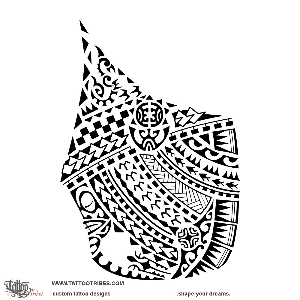 The manta is a symbol of beauty and freedom, with a Marquesan cross in it for harmony and balance, while the lizard is a symbol of good luck and health.