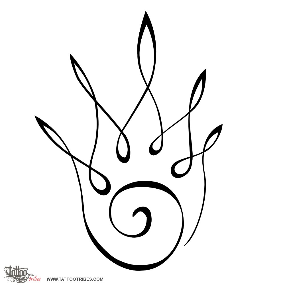 The spiral that starts the line of stylized flames is a symbol of eternity, so the meaning of this design is neverending love and passion, and continuous evolution, for passion is a fire that is never the same, and has to be constantly renewed.