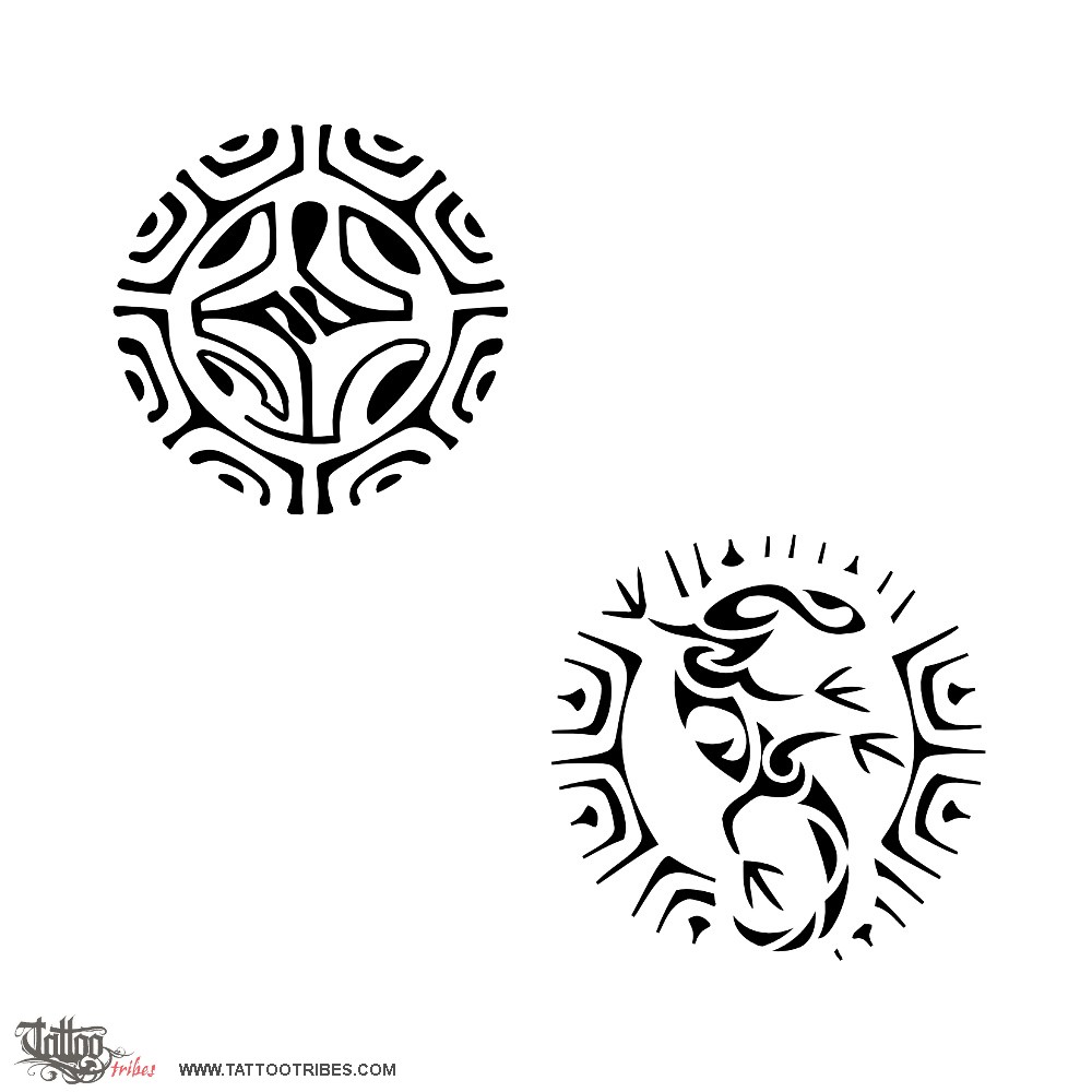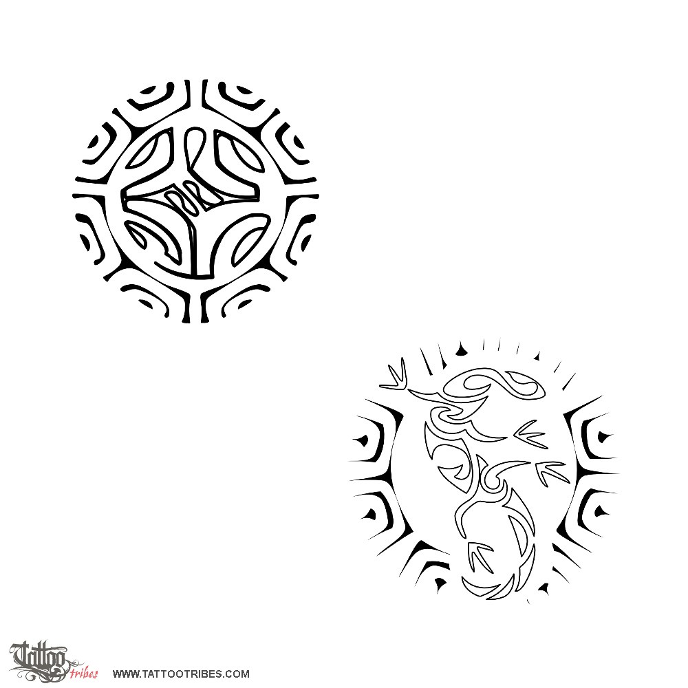 The higher version is more traditional, whereas the lower one is made of several wishing well symbols like the twist (love and eternal bond) and the fish hook, or matau (wealth and abundance). The first version has a stylized S on the lizard´s body, whereas in the second version the S is the lizard itself.