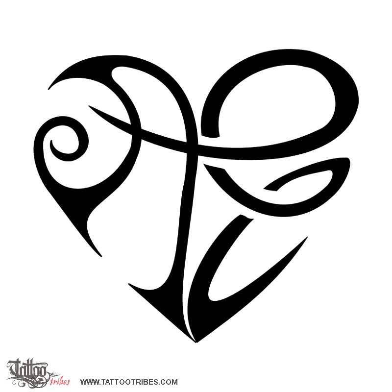 This heart made by joining the letters A and E was added to our series of such heartigrams, as we call them on TattooTribes, on a request by Amie.