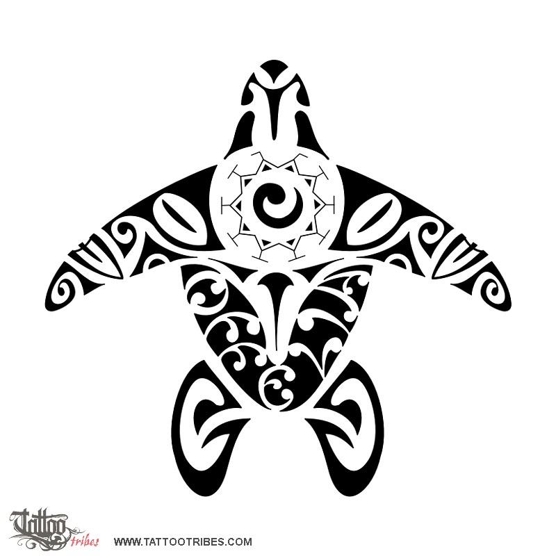Polynesian tattoos explainedThe turtle encloses a manta (beauty, freedom), whose wings are made of tikis, which will protect the new baby, and the back fins of the turtle are made of fish hooks, or matau, which symbolize wealth and abundance. The name of the baby, Offelia, is written on the turtle shell.