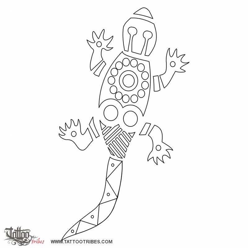 Aboriginal gecko) which was inspired to Australian aboriginal art. Whereas the previous version is mainly drawn after the style of ancient petroglyphs, this one gets inspiration from the style of contemporary aboriginal artists.
