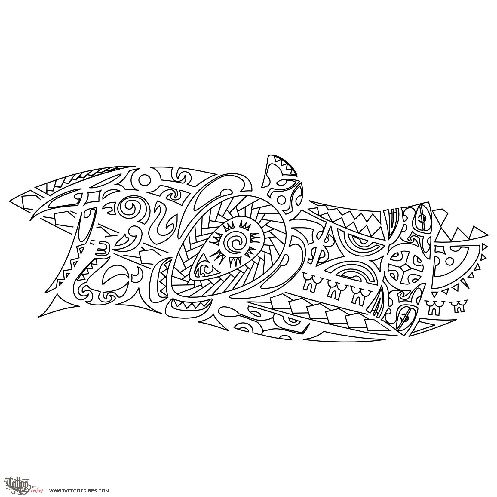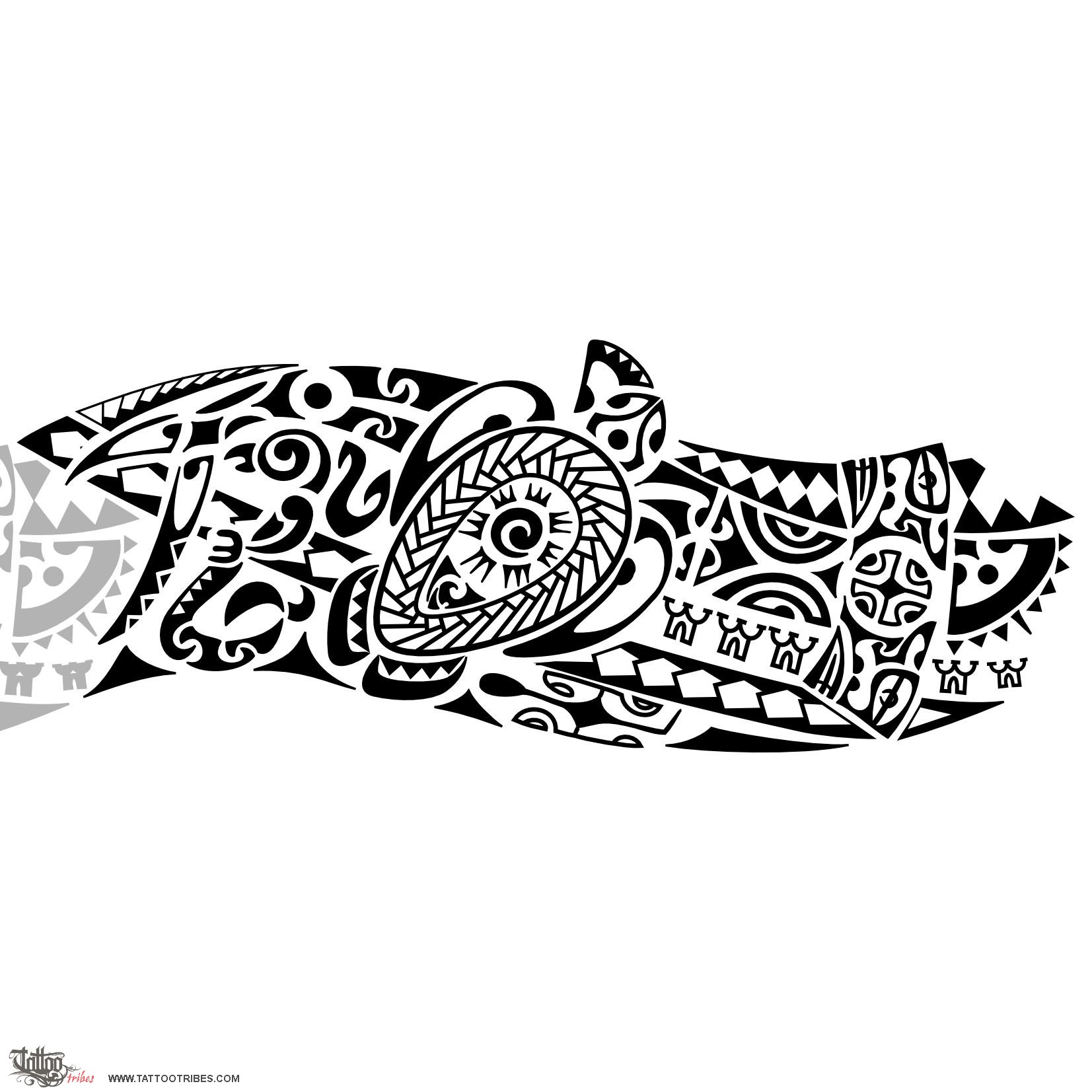 Polynesian tattoos explainedThe koru inside the sun on the shell represents this new start that brings joy to the family, the hammerhead shark stands for determination and strength, the lizard is good luck and life, and the manaia is the protective angel that will look upon the family.