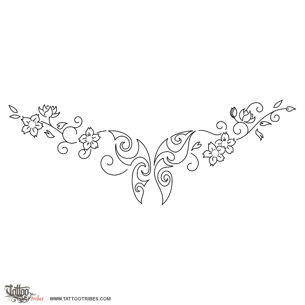 Butterfly and flowers tattoo photo