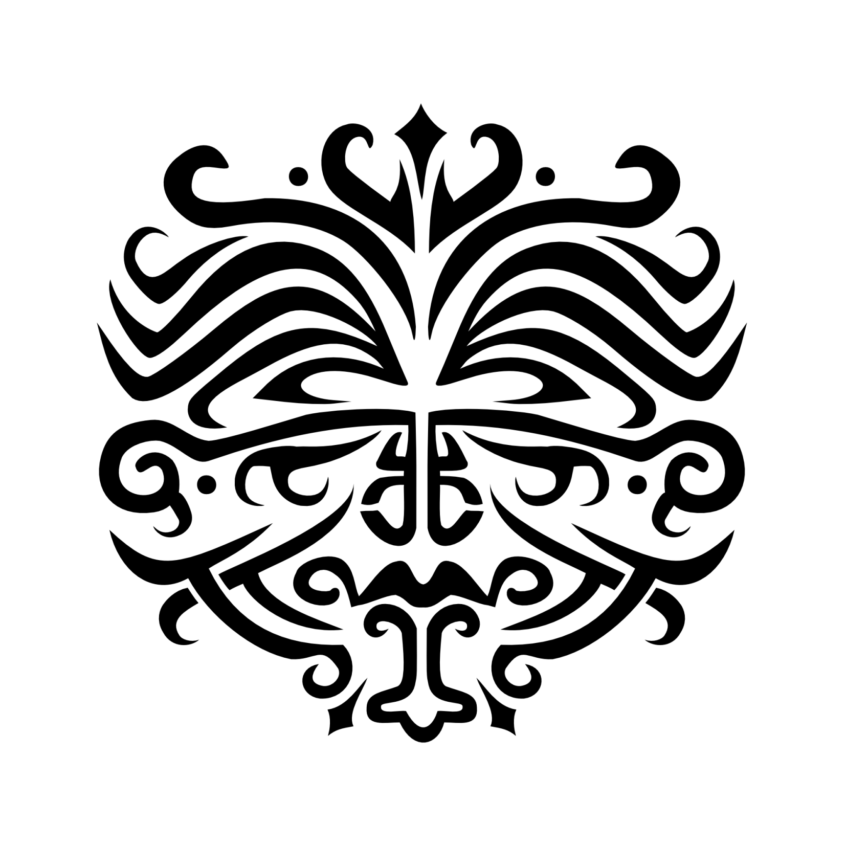 This tribalized design of a stylized Maori face tattoo was inspired by a request from Lally.