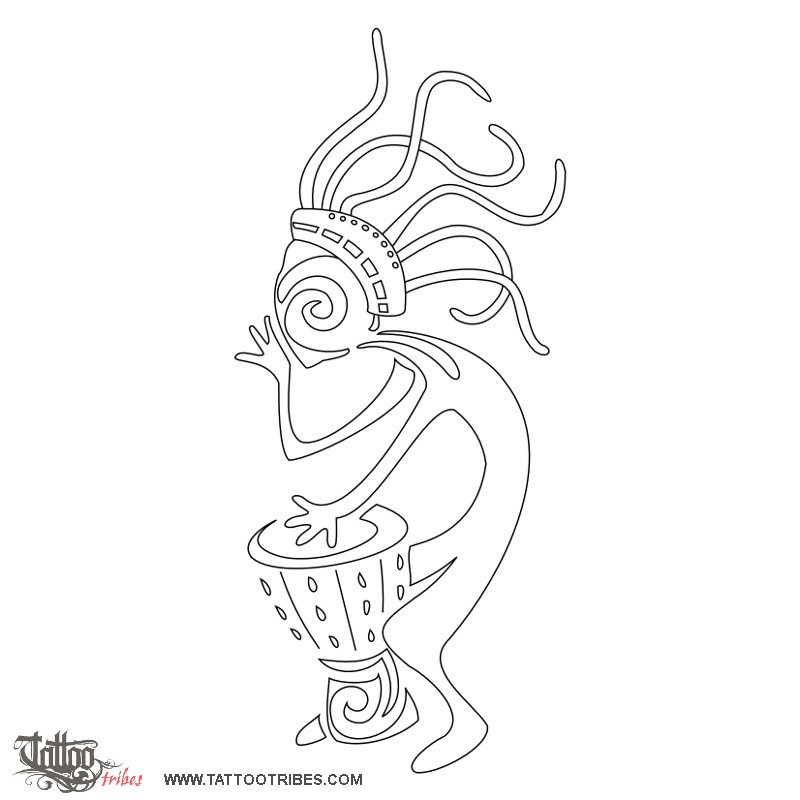 Kokopelli is a Native American figure of a man that represents the travelling musician (often a shaman and a medicine man) who moved from village to village to bring tales, news, and advice.