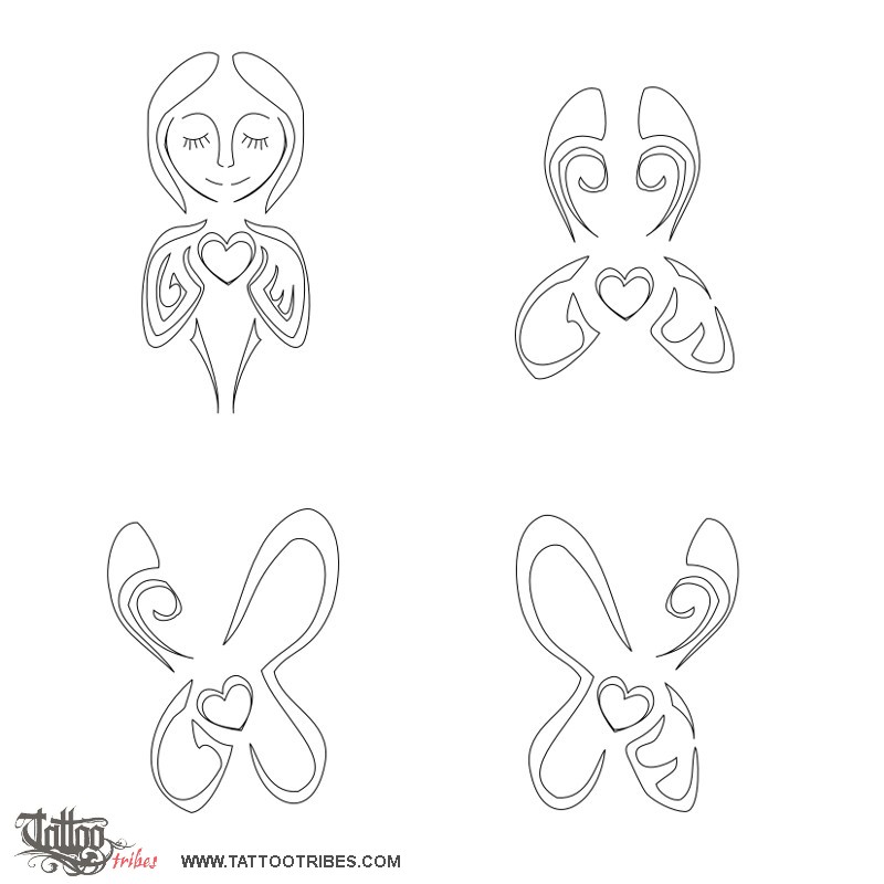 Stylizing it we used the letters themselves to form the arms and we split the design into two halves completing them with wings shaping two butterflies, to symbolize the beauty and preciousness of their bond, so that each of them can ink the butterfly with the headletter of the other.