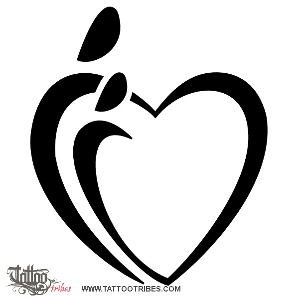 It represents two embracing persons, an elder one and a younger one, whose union gives shape to the heart.