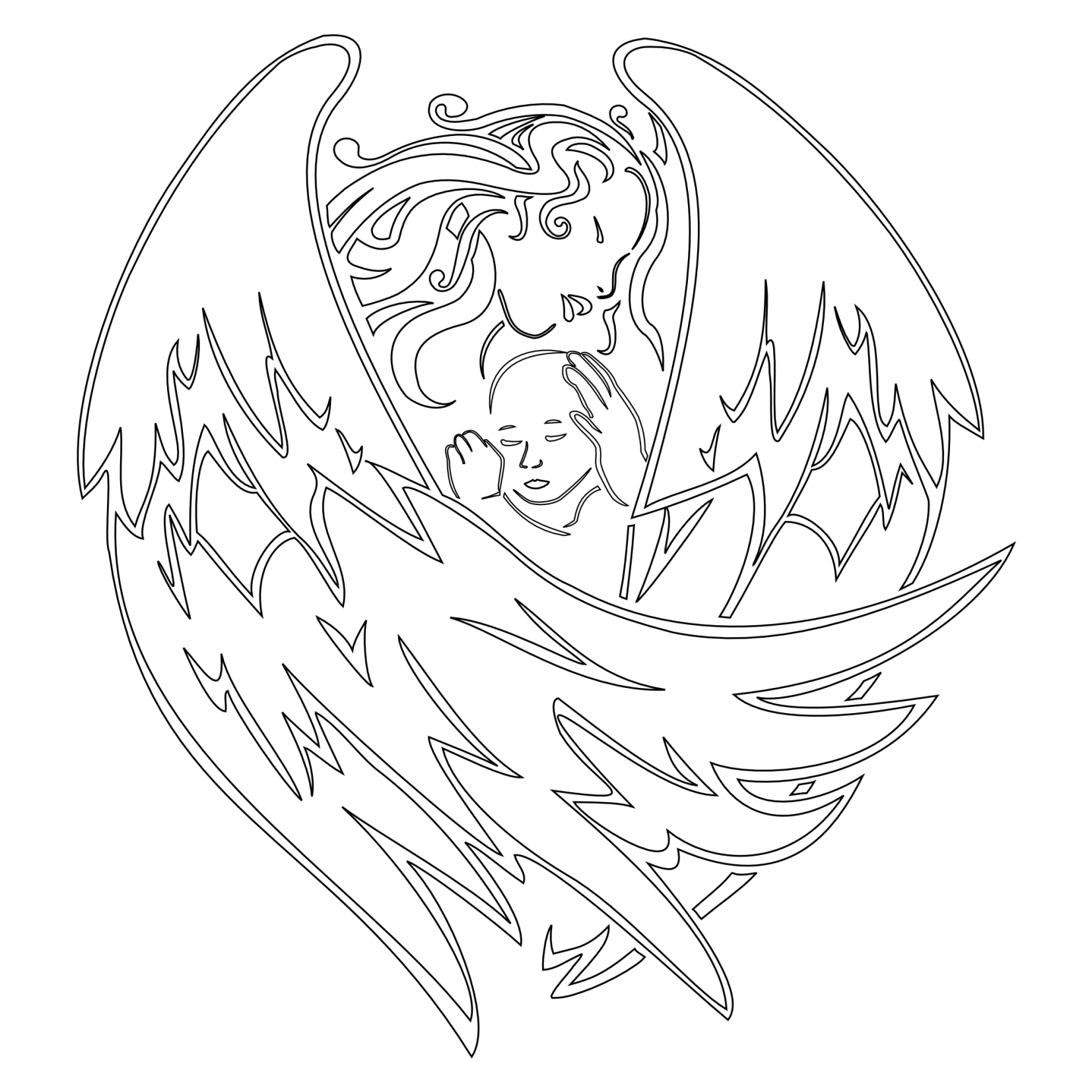 This tattoo was requested by Marco to represent the birth of his daughter: an angel protecting a new born baby. As usual, we did it in plain black and white, but the attached stencil can be used by tattooists to make it in full colour, and this design in particular would perfectly fit for colours.