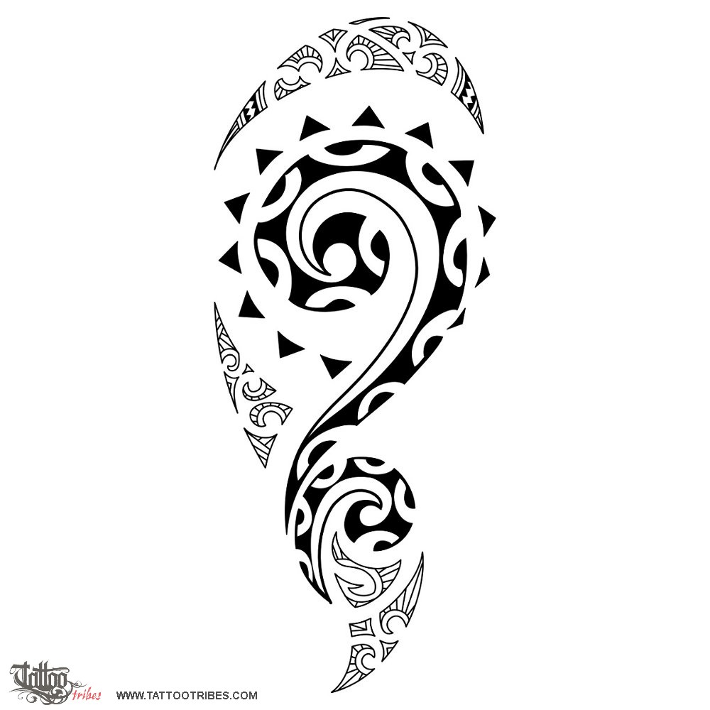 Korus symbolize new life, new start, and the waves forming them here are for change. There are korus as blank spaces in the traditionally filled elements, where we also put shark teeth (adaptability and strength) and the hammerhead shark motif (determination and tenacity). The sun around the main koru is for eternity and positivity, as a wish for Aaron to find the strength and determination to face any change and to adapt in order to turn every new start in a positive, wealthy (the fish hook) new life.