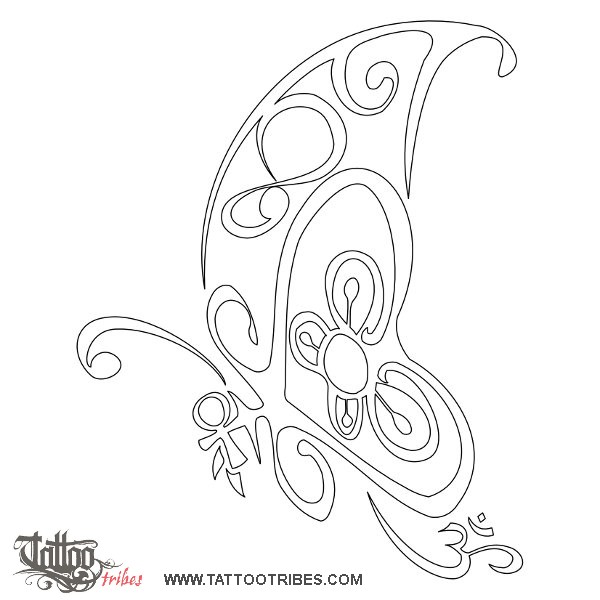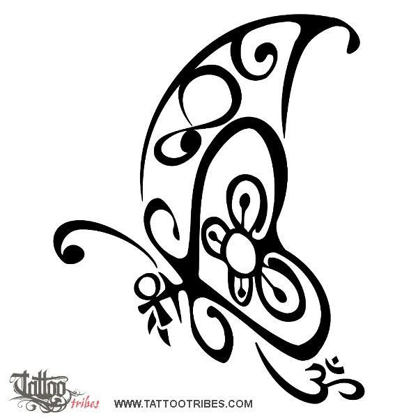 Ashaki requested a design of a butterfly viewed from side and formed by some symbols: Sankofa, Bese Saka, Aum, Ankh, Koru and infinity sign.