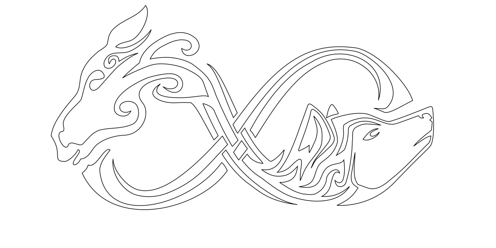 Andrea requested a tribal tattoo made up of a horse´s and a wolf´s heads joined to form the infinity symbol.