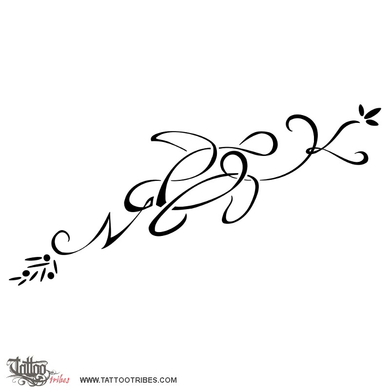 Polynesian tattoos explainedThis turtle made of woven lines and swirls draws a twist in the body, a symbol of eternal union, and joins the two letters N and K, initials of mother and daughter´s names.