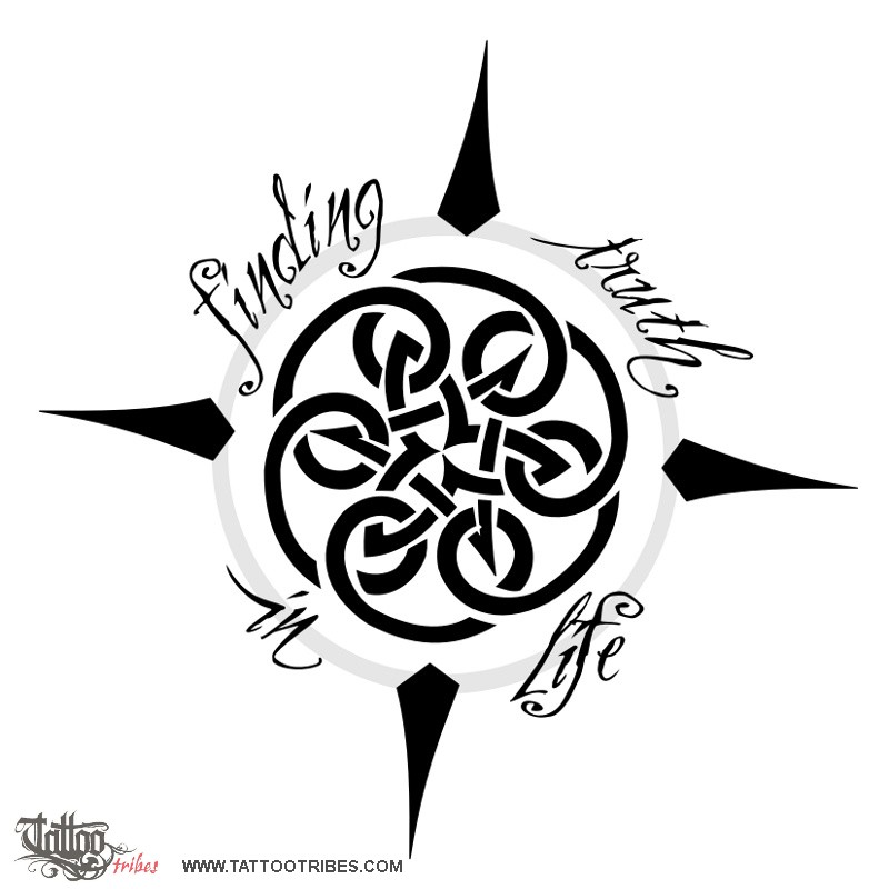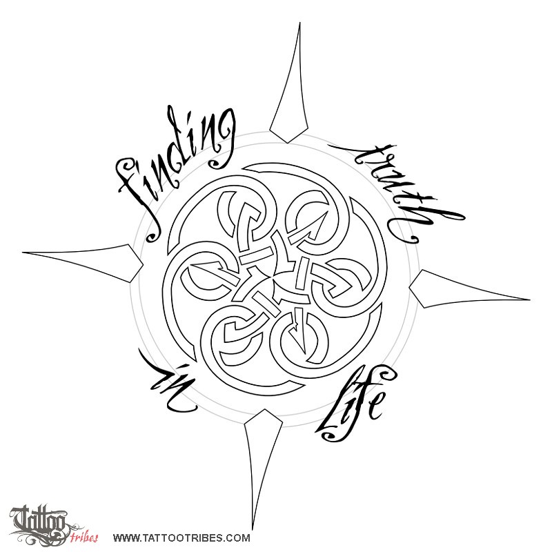 Patrick requested a design featuring a very simple compass having the center made of a Celtic knot, and with the addition of the phrase "Finding truth in life" around it.