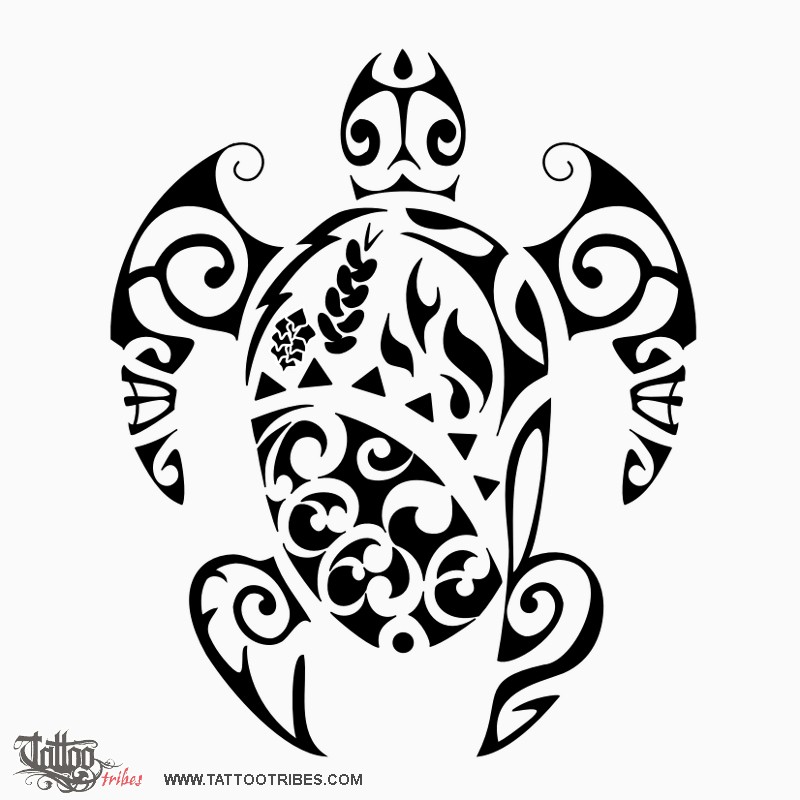 Polynesian tattoos explainedThe front flippers are tikis to guard Nancy, who requested this design, from every side, and the turtle itself is a symbol for family and travellers.