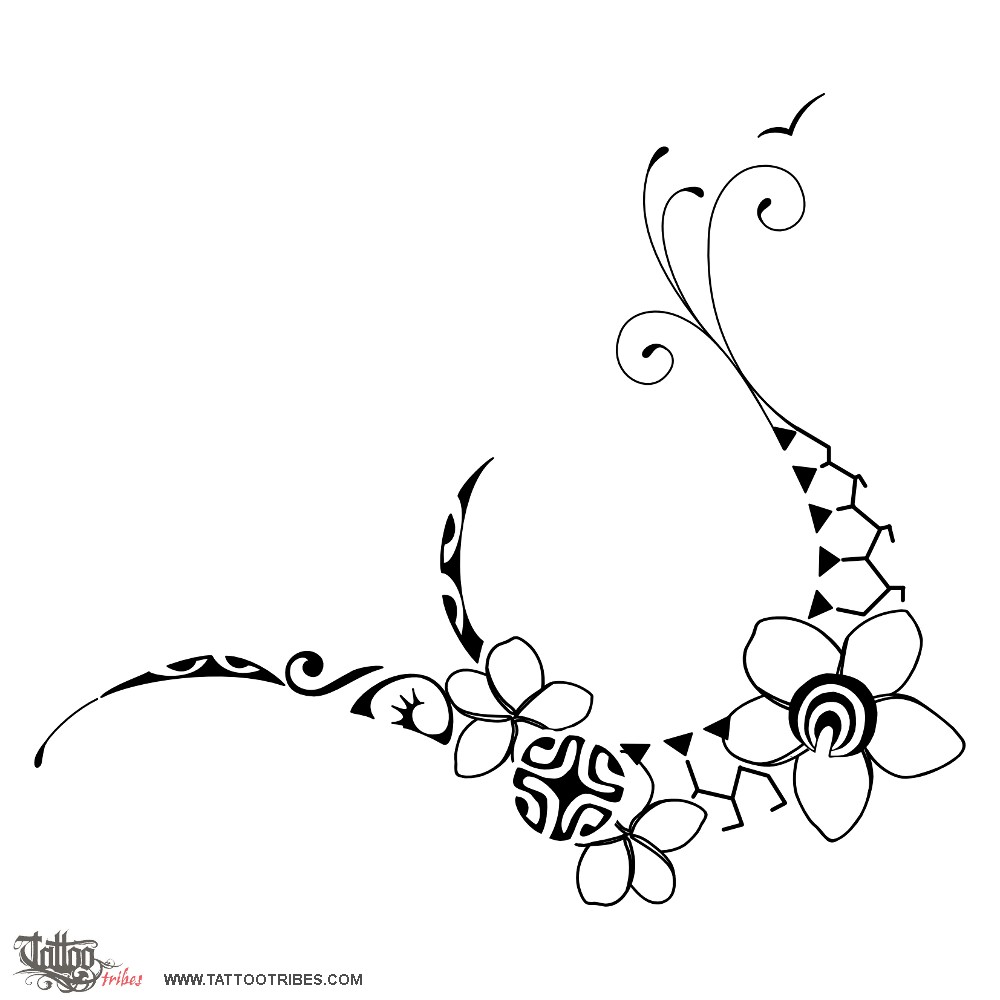 The bigger flower of plumeria on the back represents ancestors (and so does the ipu symbol on it, as well as descent and fertility).