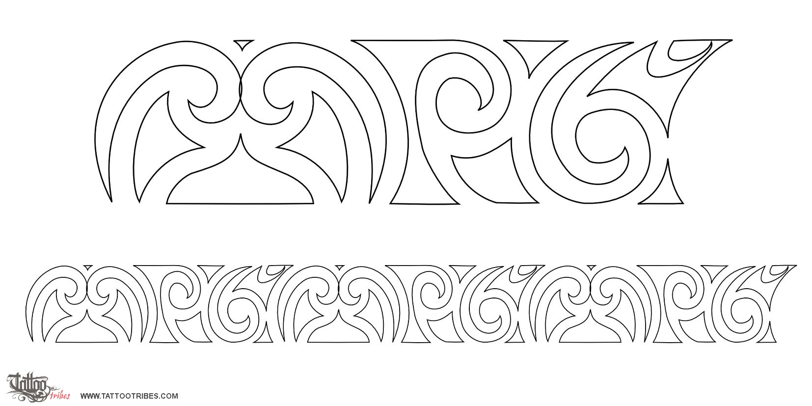 Massimo requested a Maori styled tribal armband with hidden inside the pattern the first letters of his family names (M,P,G). Look at the drawing now. The armband is made by repeating the basic pattern which includes the three letters, with some smaller filling patterns as joinings between the letters.