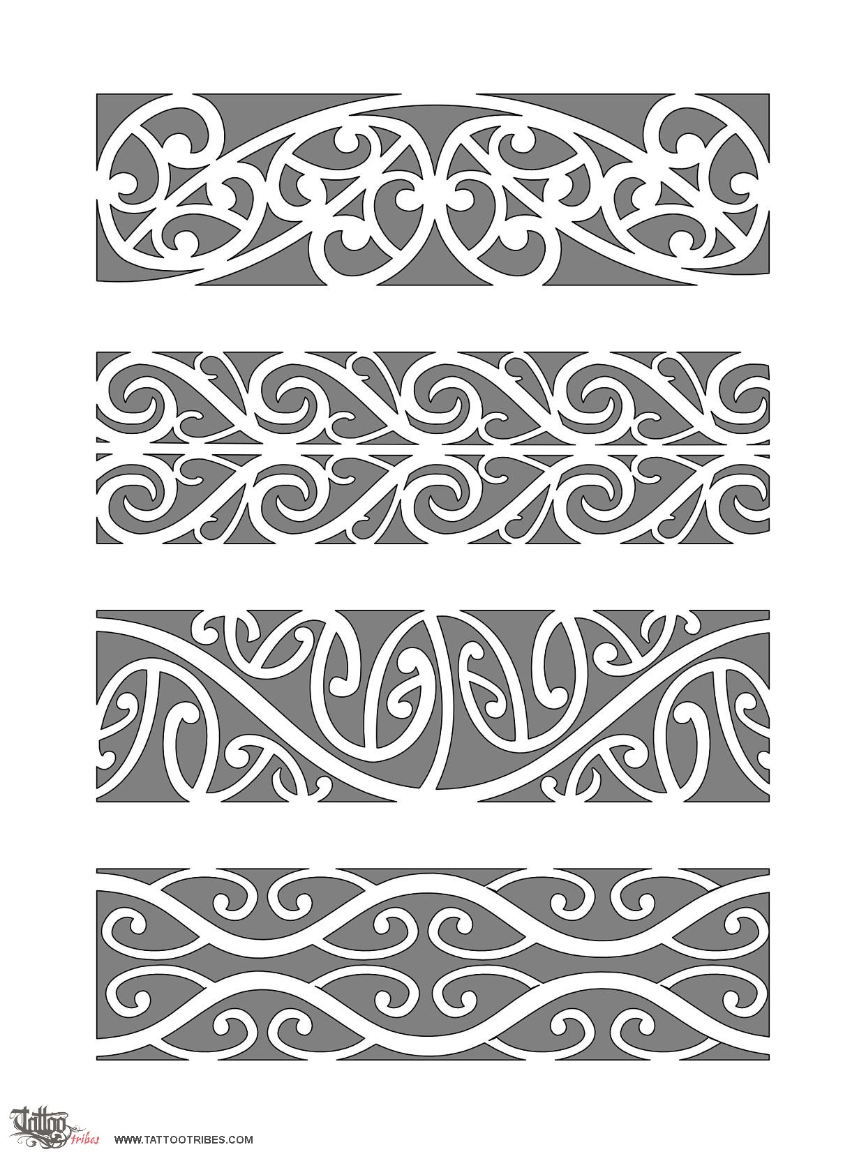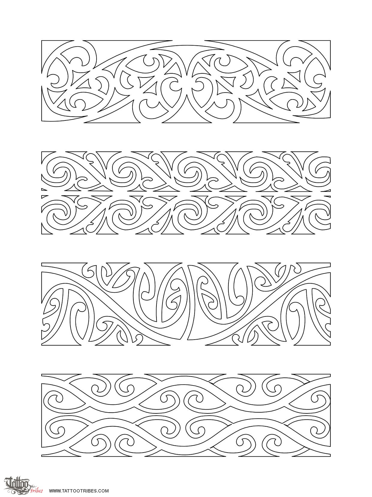 This sheet represents some traditional Maori patterns, which can be used as armbands.