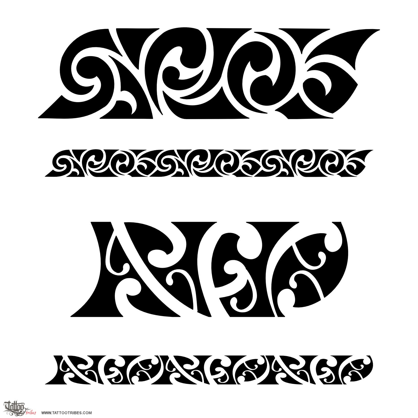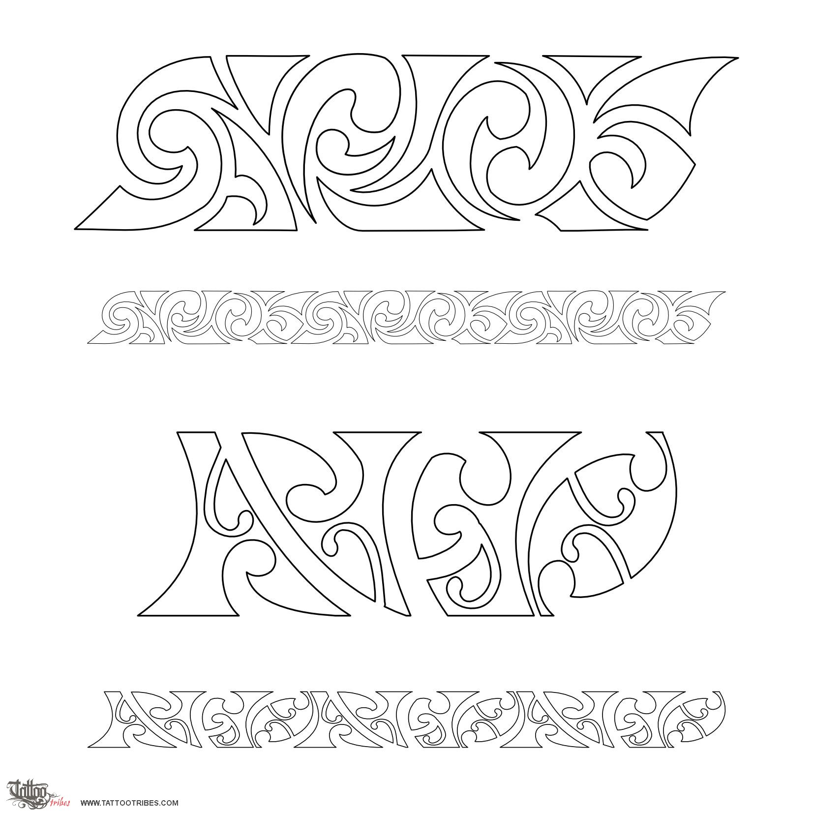 These two versions of a Maori armband hide the S,F and O letters, in plain black and cut away in white from the black background.