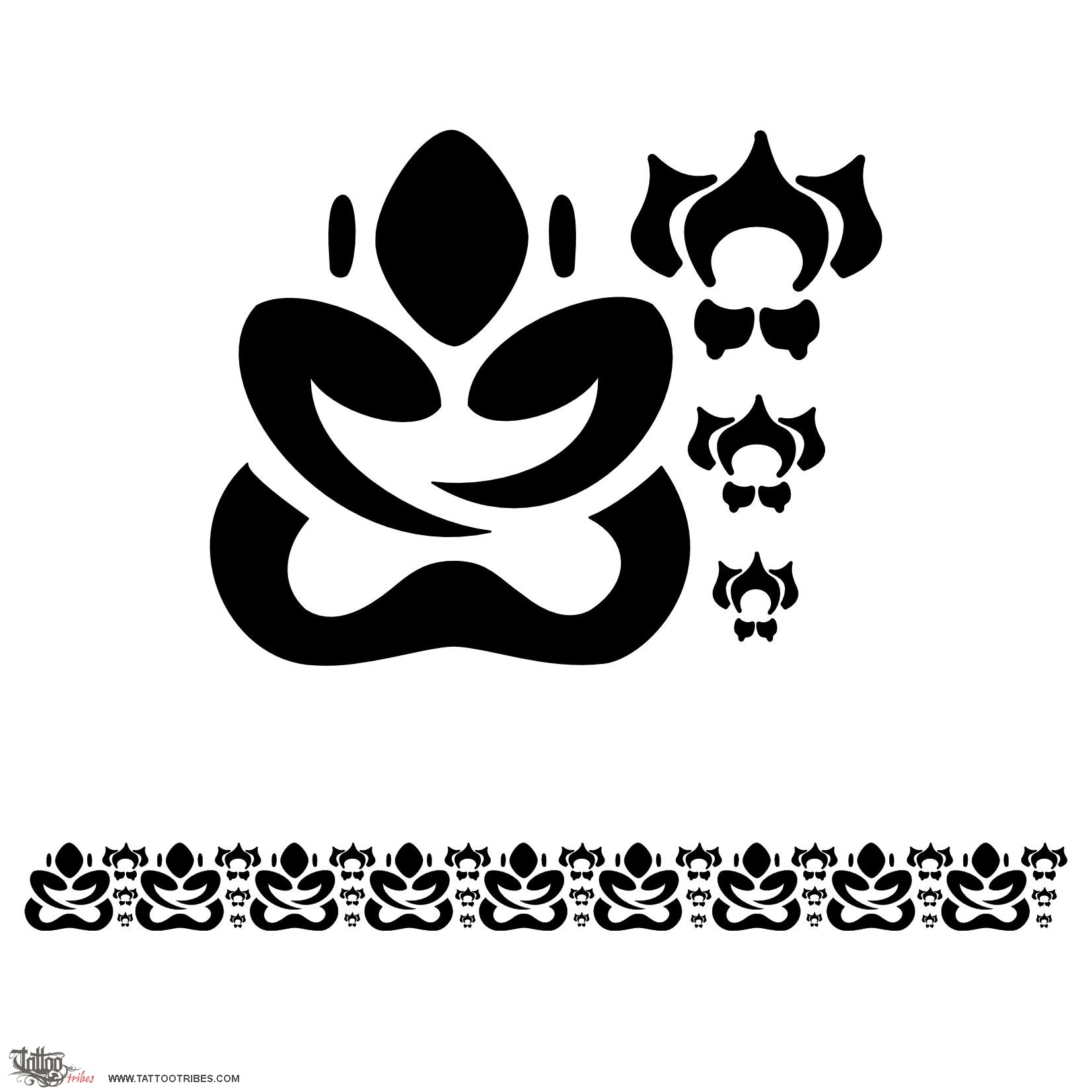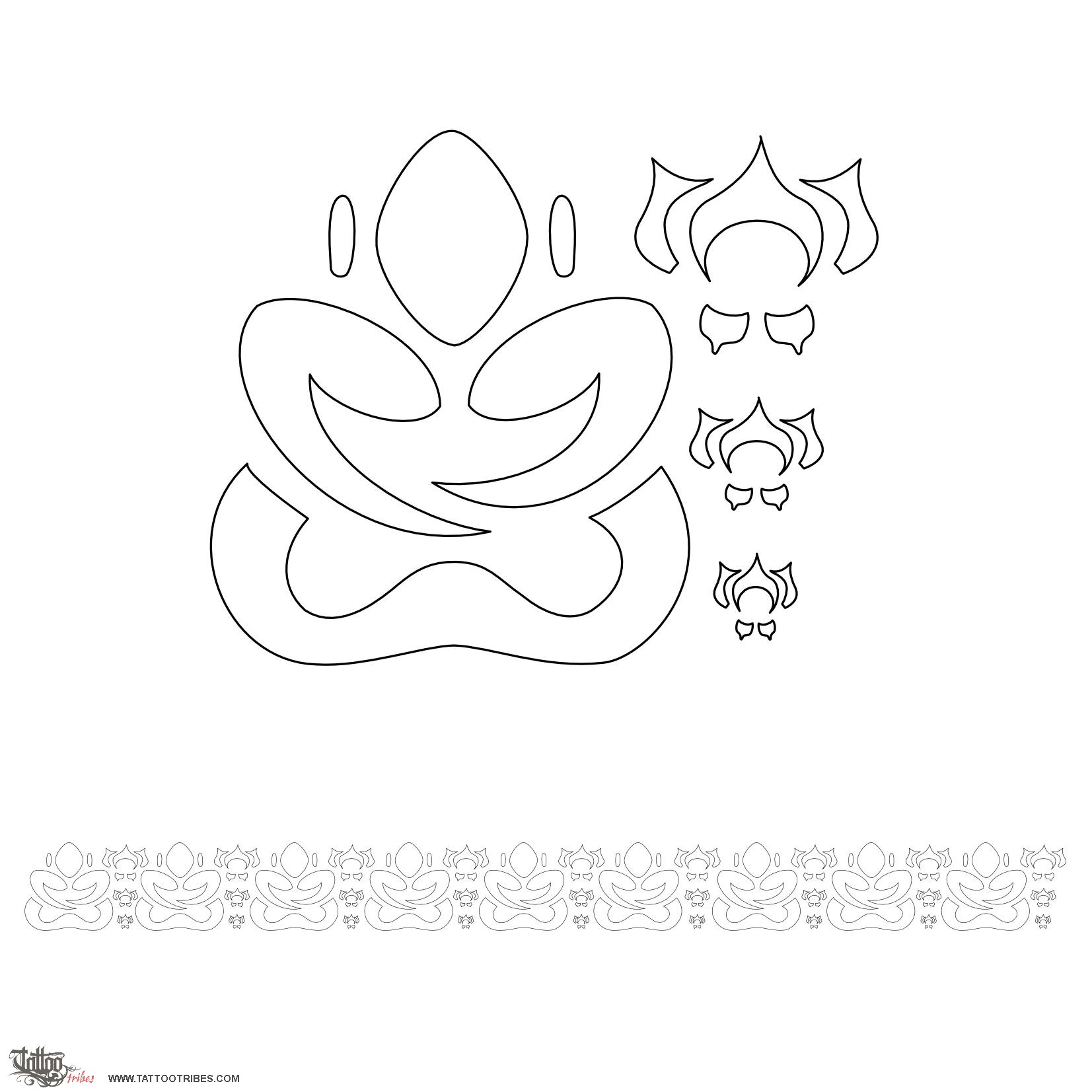 Michele requested an armband for the upper arm that would include a Thai protective symbol. One that is greatly used for protection, even if it is often tattooed on the back, at the basis of the neck, is the meditating Buddha. This design alternates the Buddha with the lotus flower, a symbol of perfection, and it should be resized in order to have the Buddha repeated nine times, to represent his nine attributes.
