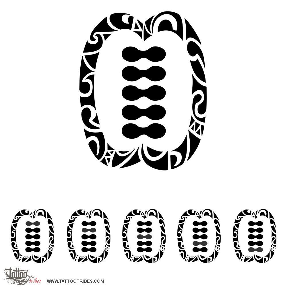 The symbol we used as a basis for this tattoo, requested by 5 friends who want to have a shared tattoo to symbolize their friendship, is an Adinkra design called "ese ne tekrema", or "the teeth and the tongue", and it represents a strong bond, interdipendence.