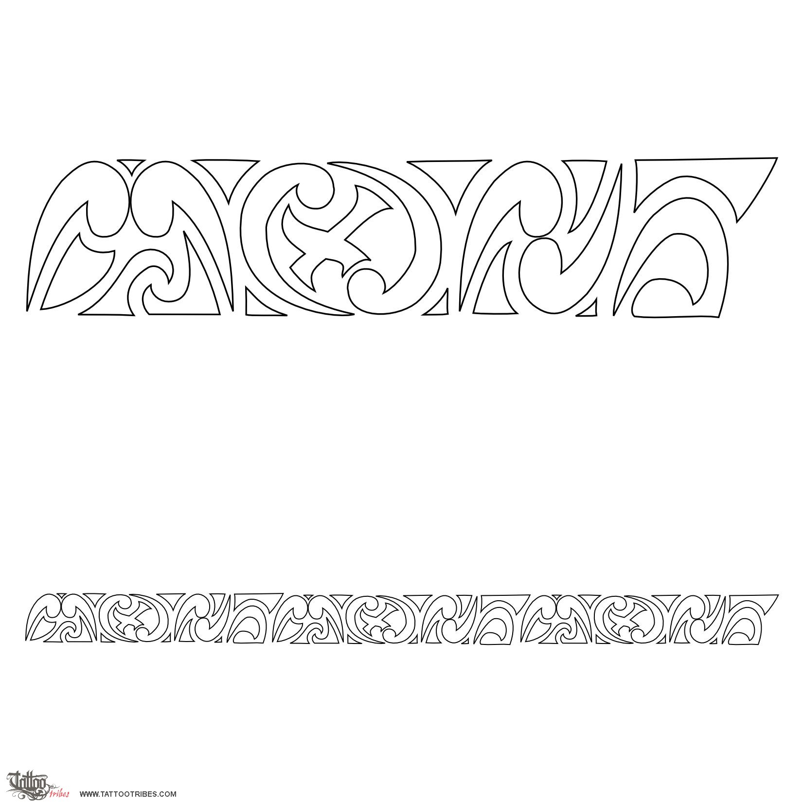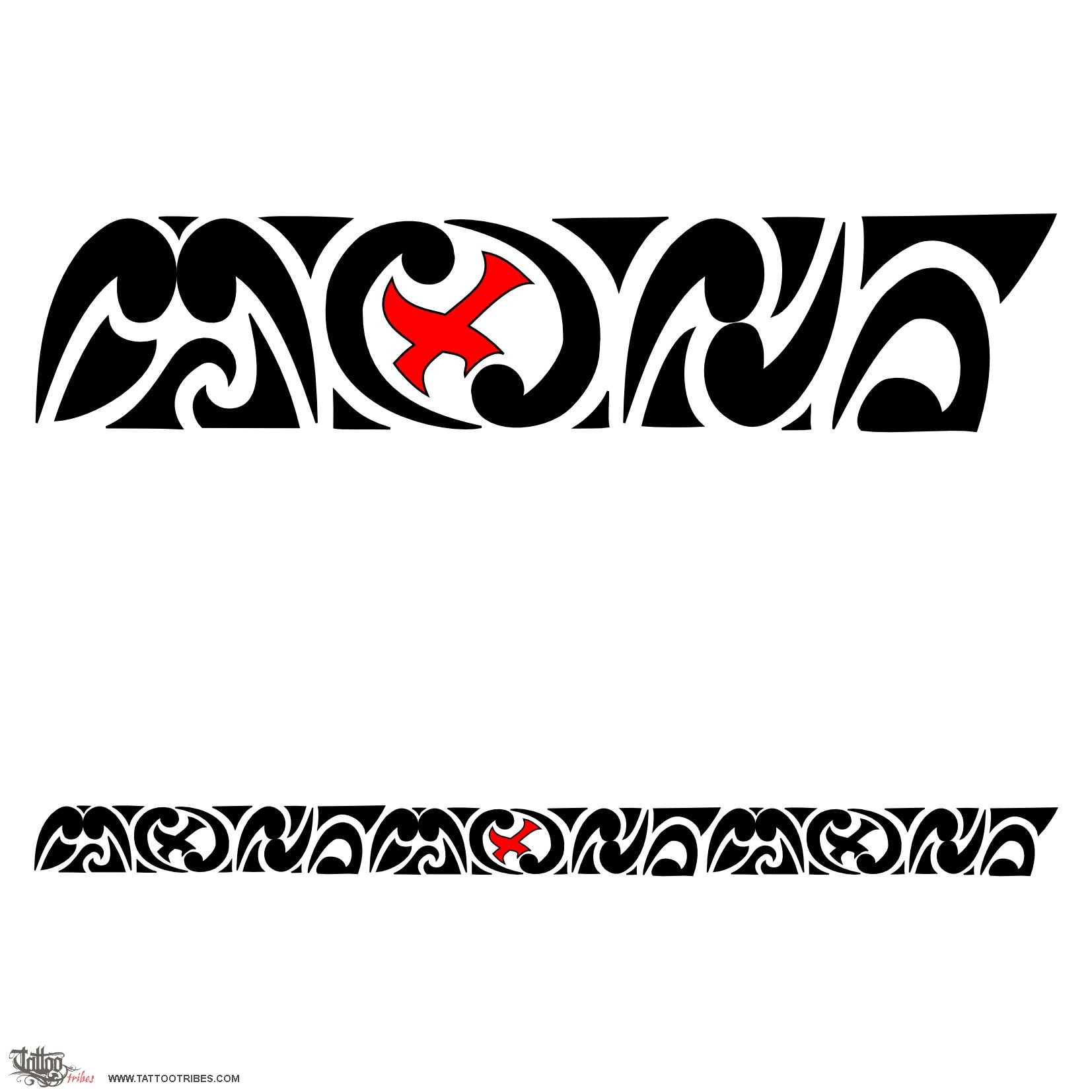 This Maori styled armband was requested by Paolo. We at TT call "maorigrams" those Maori-like designs that hide letters inside, in this case M,O and N. A red X was requested to be added in the middle of the central O.