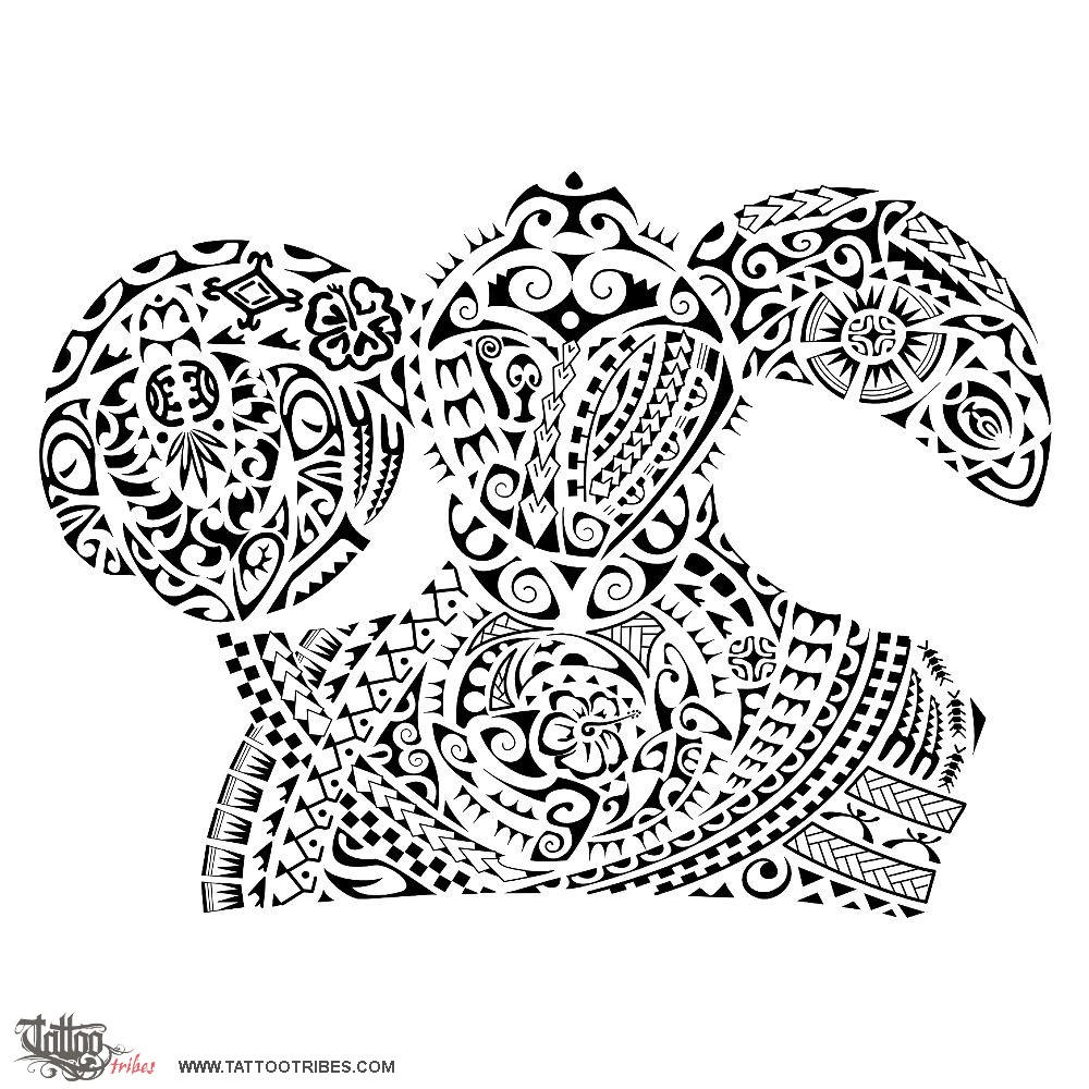 Polynesian tattoos explainedCarlo requested this tattoo that represents three generations. The part on the shoulder represents a turtle with its front flippers extending onto shoulder blade and pec, connecting the past to the future.