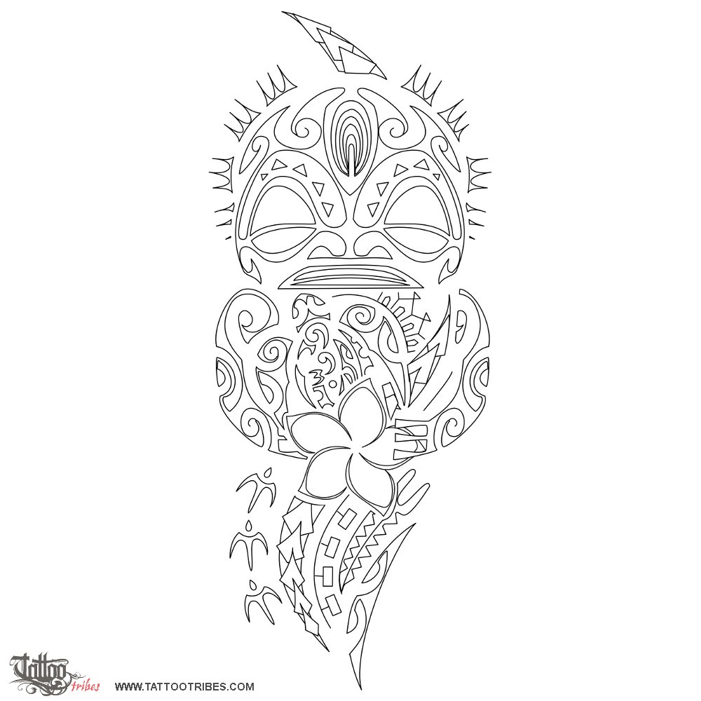Polynesian tattoos explainedAlessandro requested a tiki design representing his mother (the frangipani flower symbolizes femininity) and the voyage that makes her become the protector of their family (she holds in her arms a turtle symbolizing familly). The manaia on the turtle´s shell underlines her role as a guardian angel.