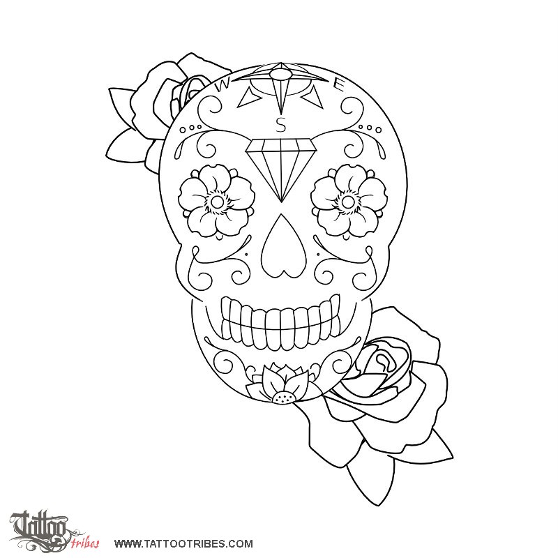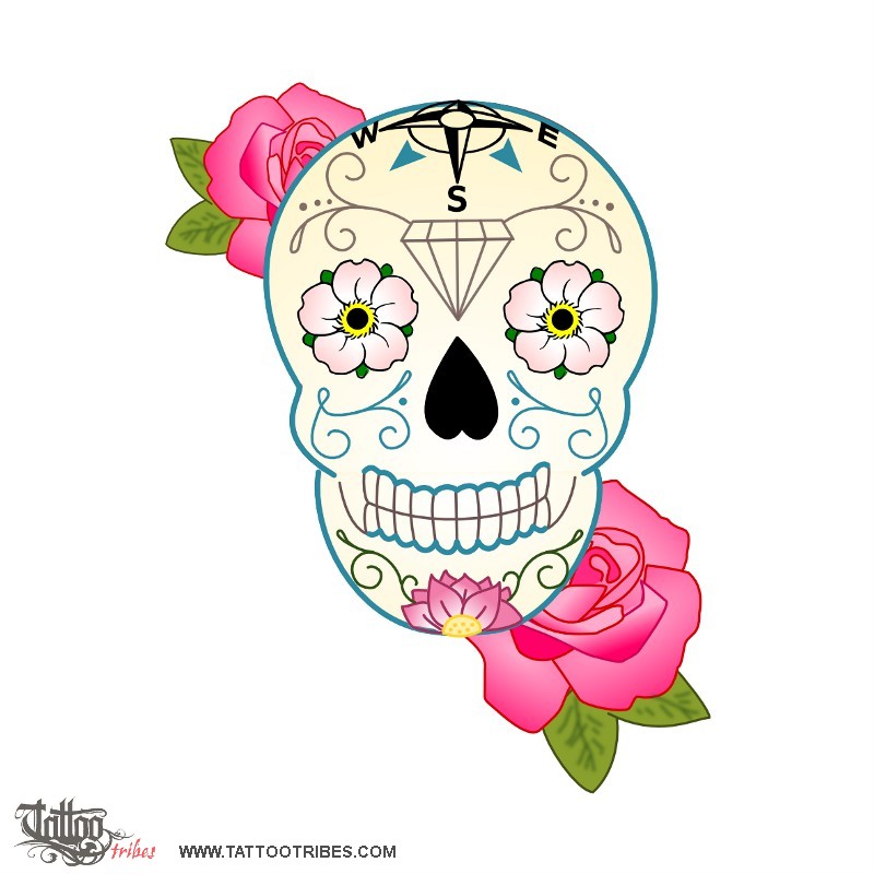 Polynesian tattoos explainedThis skull with lotus flowers, a diamond and a compass was requested by Camilla.