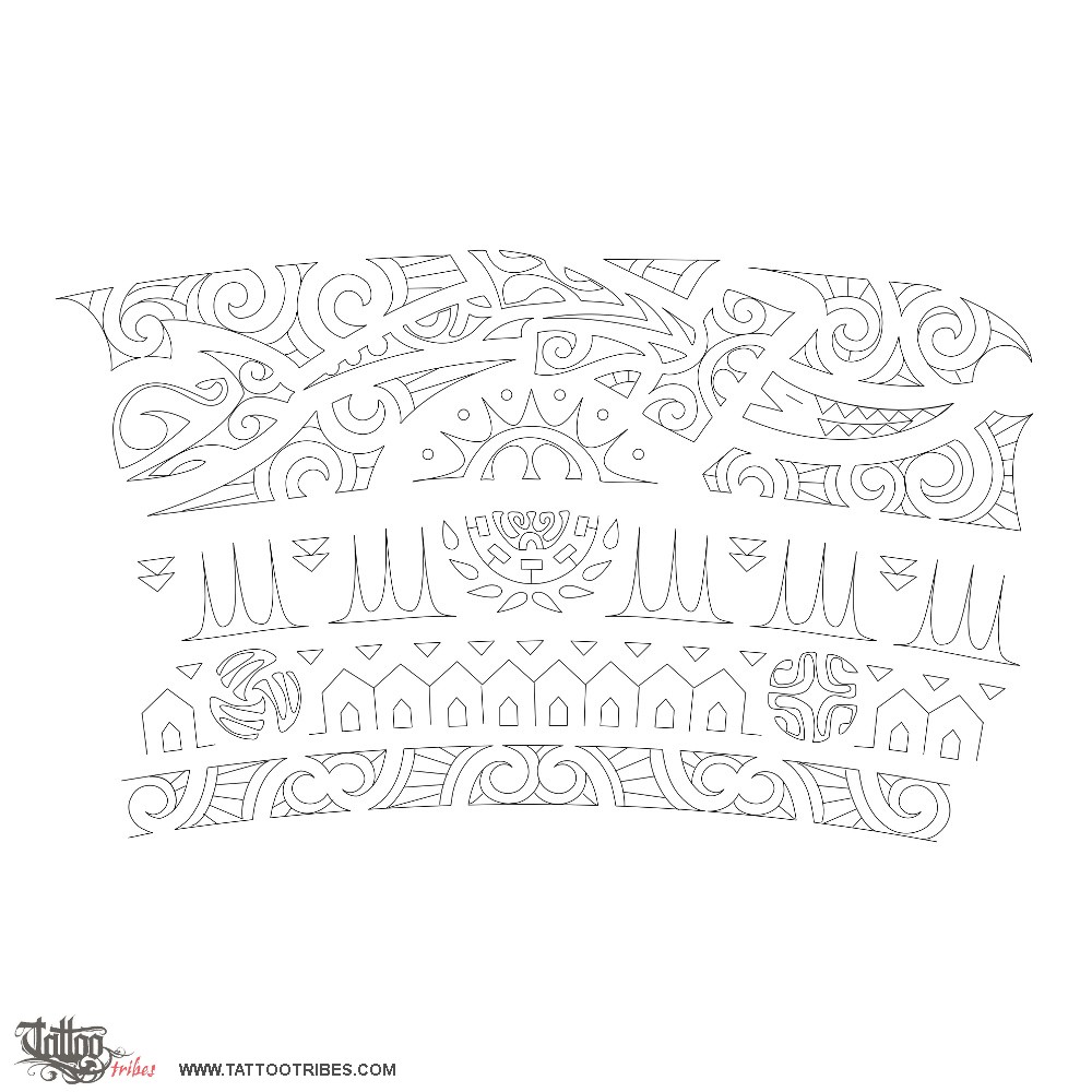 The lower band is dedicated to volleyball, with the ball paired and balanced by a Marquesan cross, indicating balance and harmony.