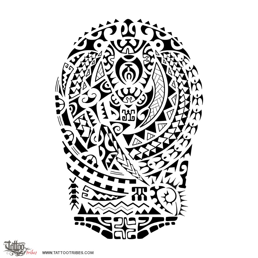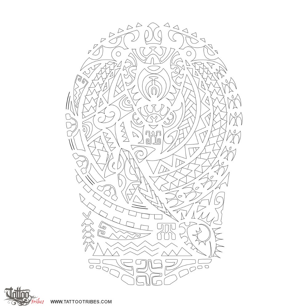 Several motifs create a safe zone around the turtle: the braid for union, shark teeth for protection and adaptability, a lizard for good luck, spear heads.