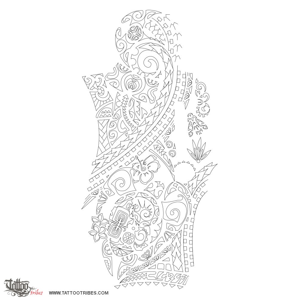 The turtle symbolizes the new family started by Tania, who requested this tattoo, and it´s surrounded by elements relating to her family of origin: a flower of hibiscus for her mother, a mere and an enata for her brothers, a frangipani for her and a bee for her father.
