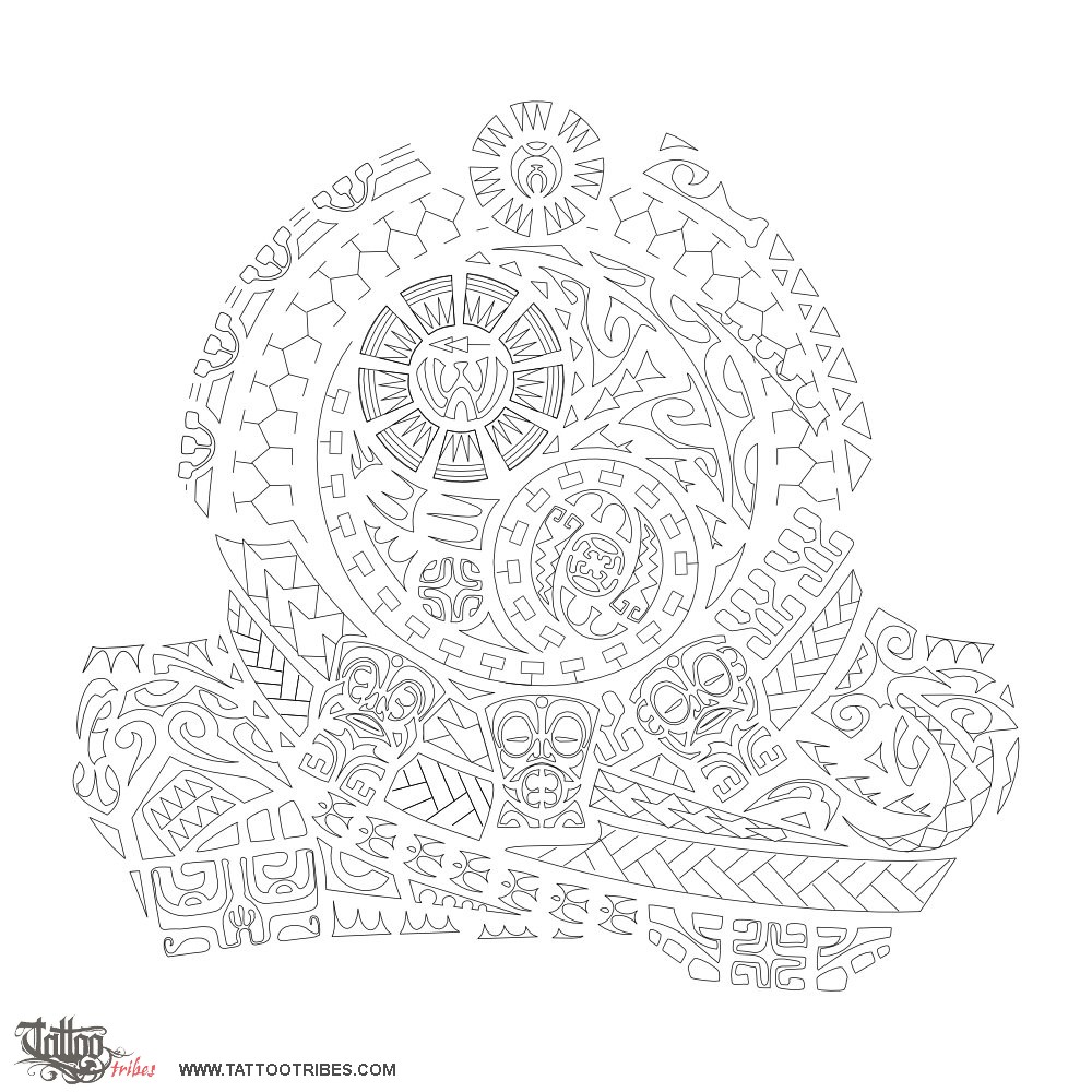 Other elements we included balancing each other are a manta (freedom, voyage) and a Marquesan cross (harmony, balance).