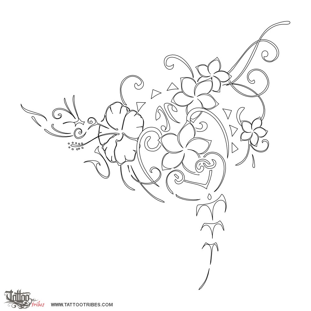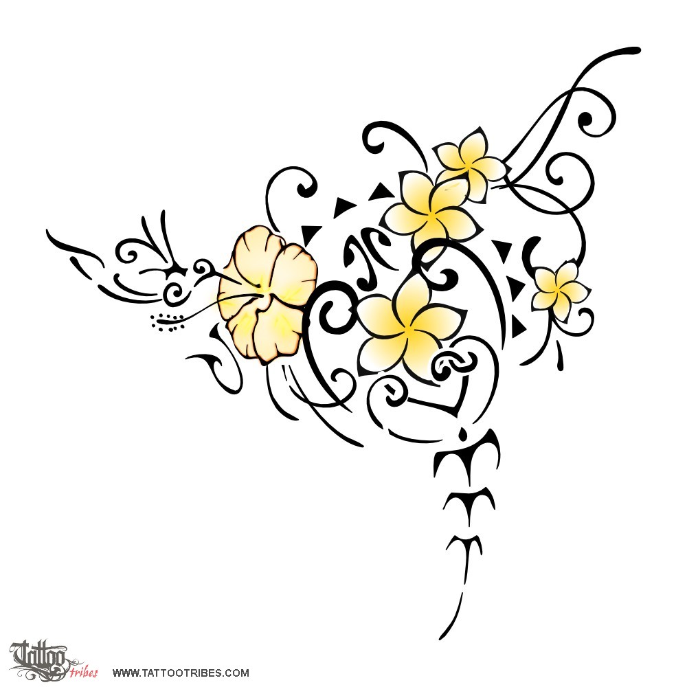 Polynesian tattoos explainedThis tattoo was requested by Kristen and it weaves the manta giving the general shape, a turtle, plumeria and hibiscus flowers and a humming bird into a floral design.