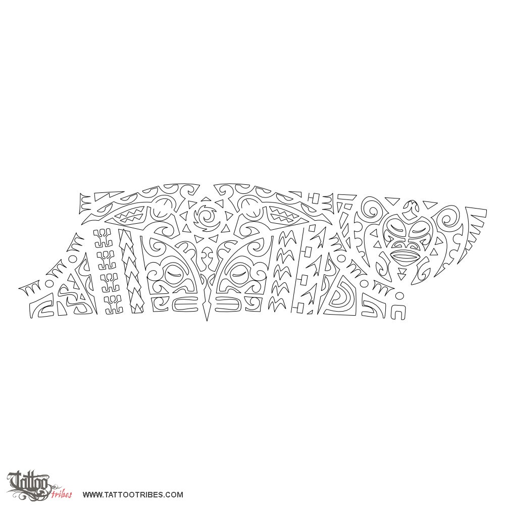 A manta encloses both extending on the sides symbolizing voyage, freedom and knowledge, held and protected by two tiki.