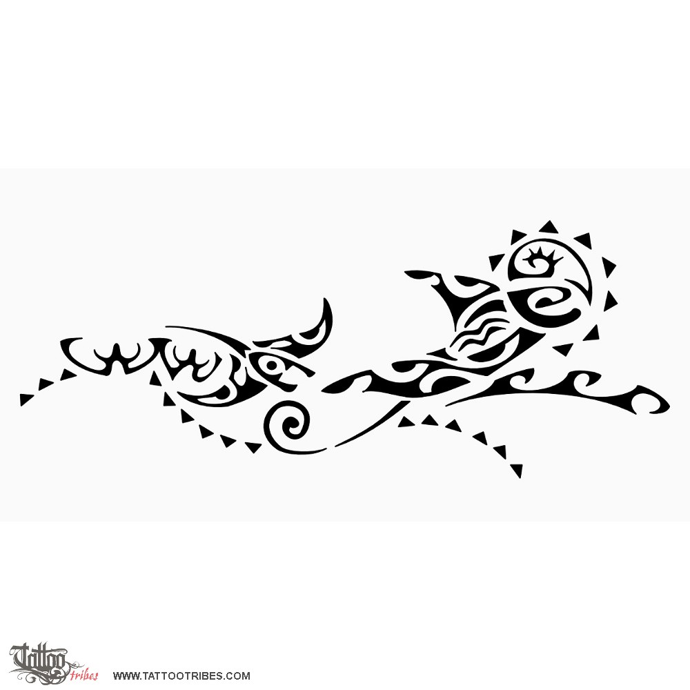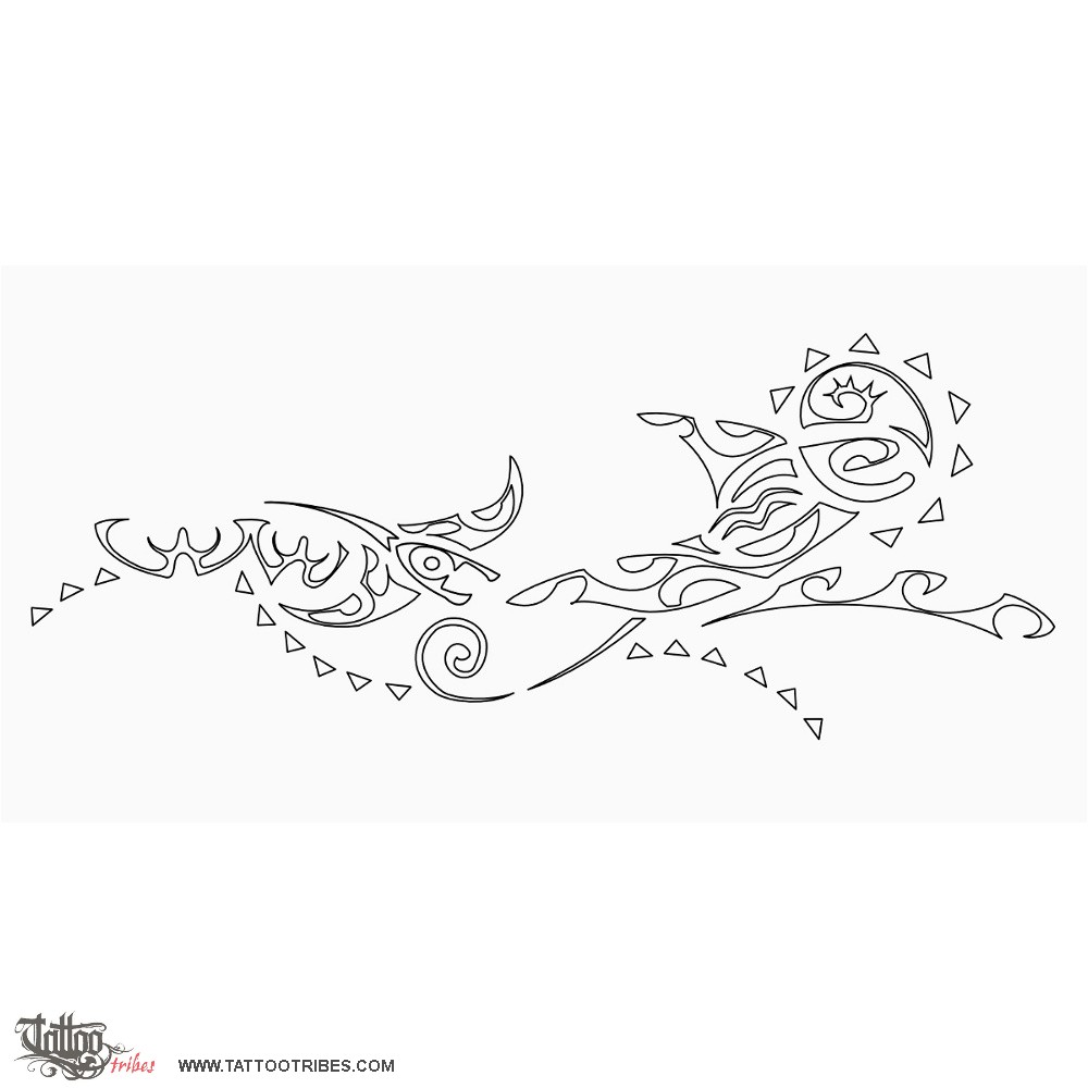 Whilst a moray eel stays connected to earth (the koru symbolizes life and new beginning), the bigger one flies towards the sun, past the waves