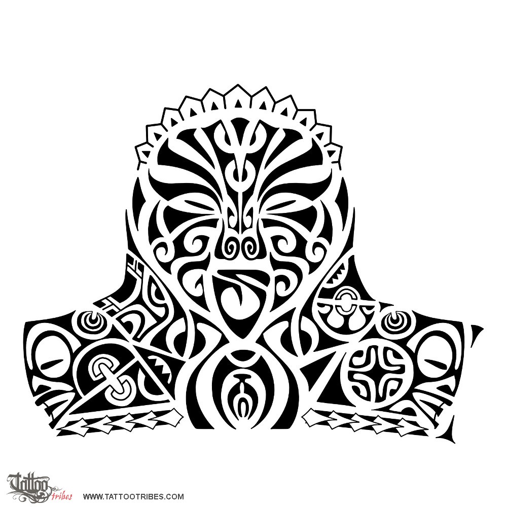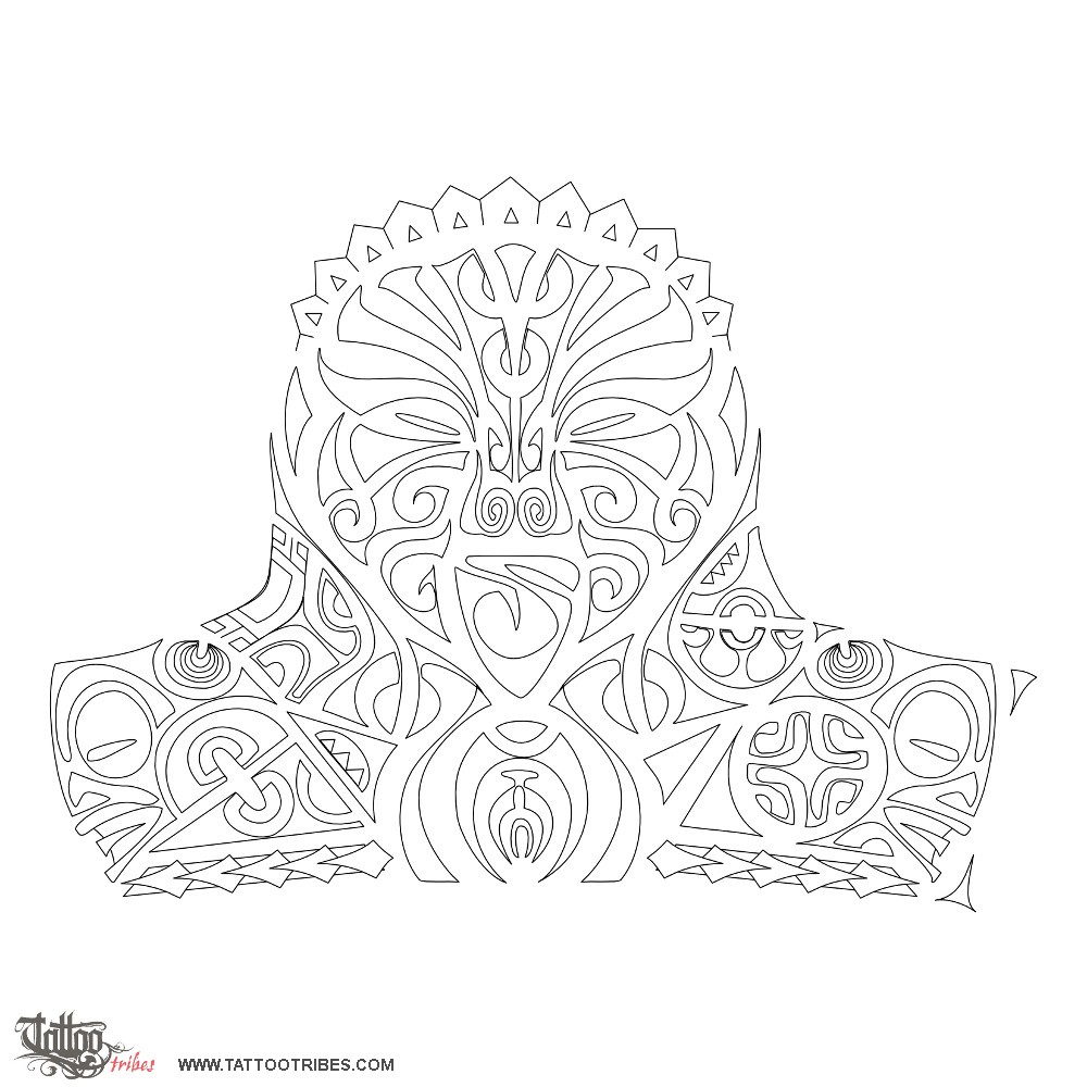 The motif on top represents ancestors guarding from above while the spear heads closing the tattoo on the lower end symbolize courage and strength.