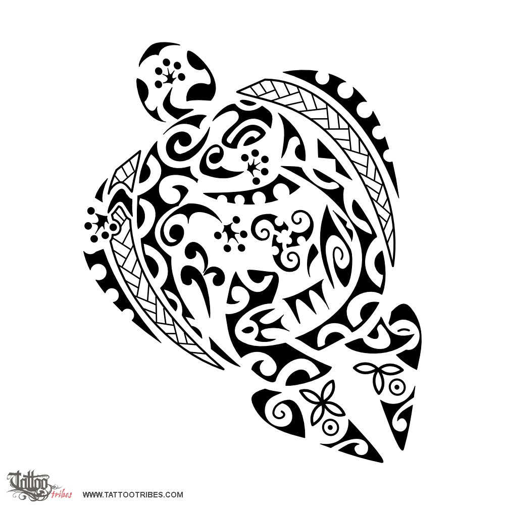 Polynesian tattoos explainedThe general shape of this tattoo requested by Paul is that of a turtle (family, voyager), with its shell being shaped by a gecko (health) and hammerhead shark (tenacity, strength) placed as the pisces zodiac sign.