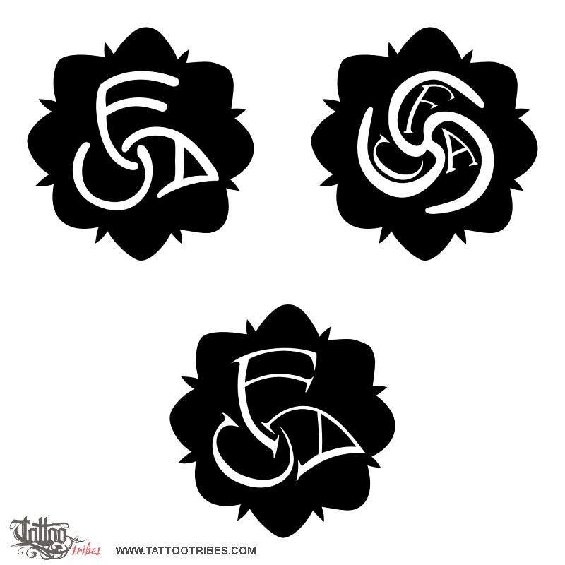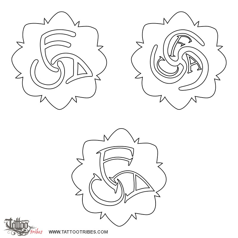 Dimitri requested a tattoo looking like the Borneo rosette, but including the letters F, A and C on the inside, possibly in Roman characters.