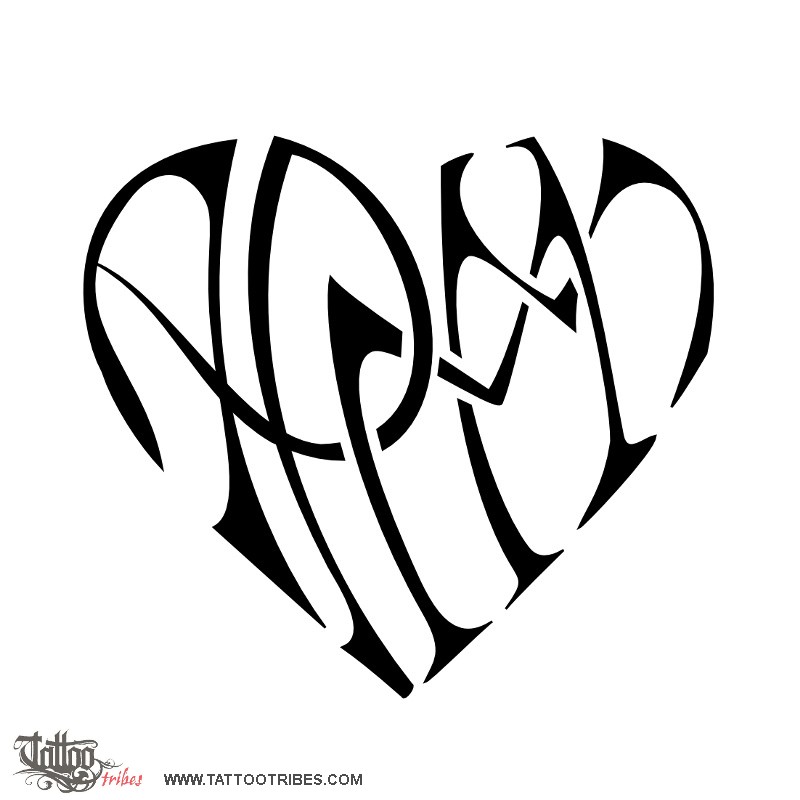 Polynesian tattoos explainedHearts shaped by letters symbolize the bond that exists between loved people, and in this case we merged the first letters (A+P+M+M) of the names of the parents and children of Andrea, for whom we prepared this design.